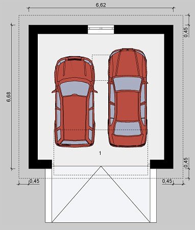 Wolnostojący garaż przeznaczony na dwa samochody.