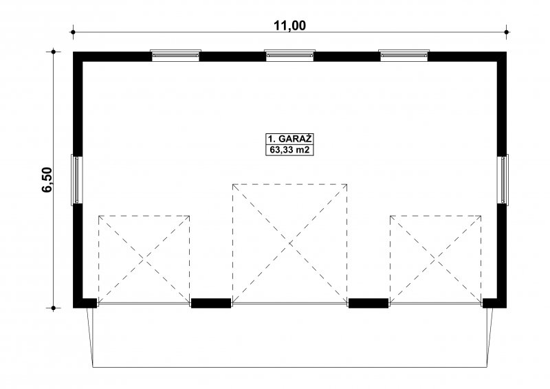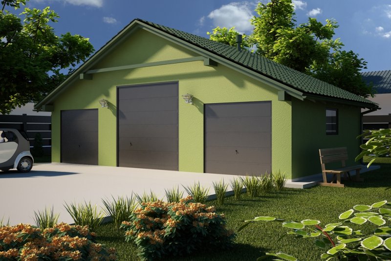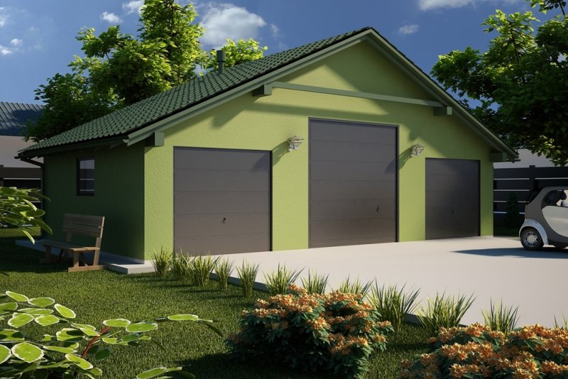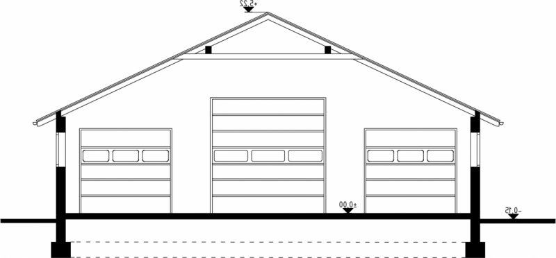 Projekt garażu trzystanowiskowego, parterowego, niepodpiwniczonego, przeznaczonego dla samochodów osobowych i dostawczych. Do projektu dołączone jest zestawienie: stali, więźby dachowej oraz stolarki drzwiowej i okiennej, jak równieżbezpłatna zgoda na dokonanie zmian.