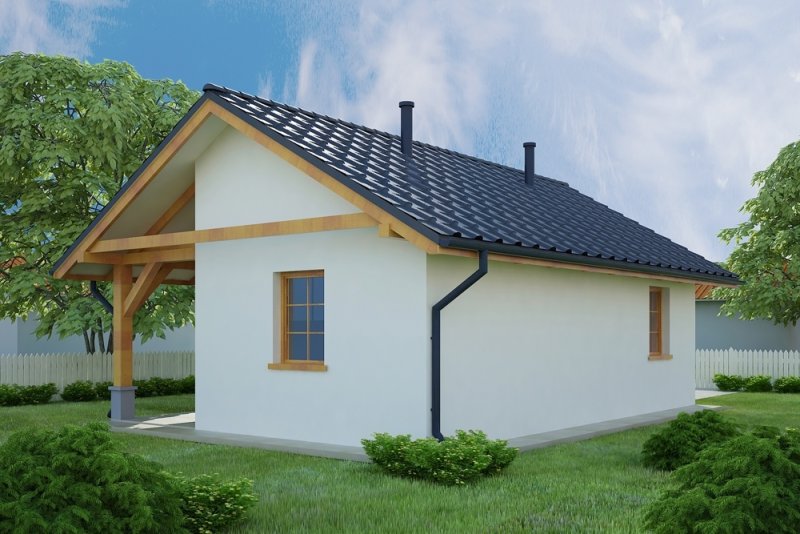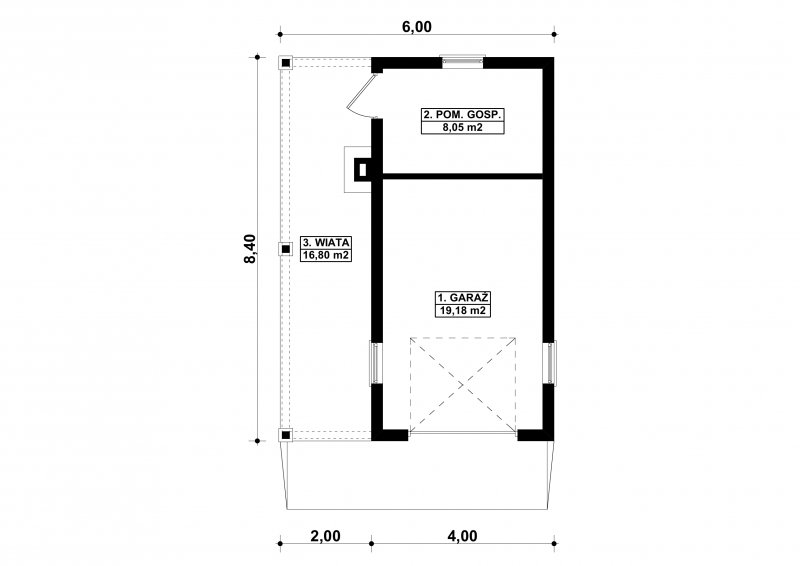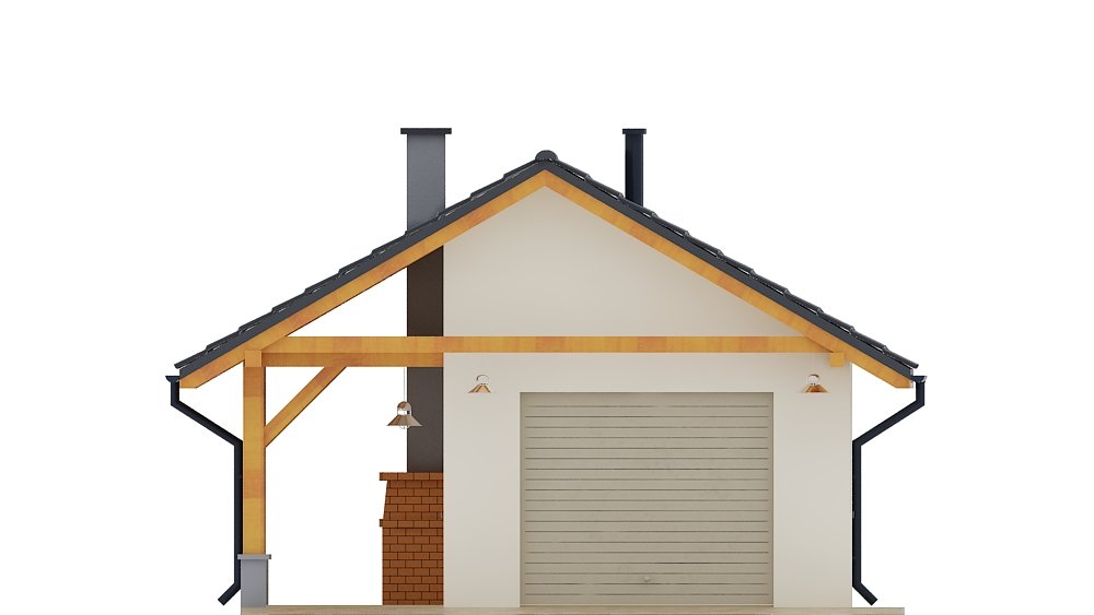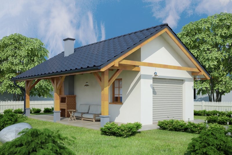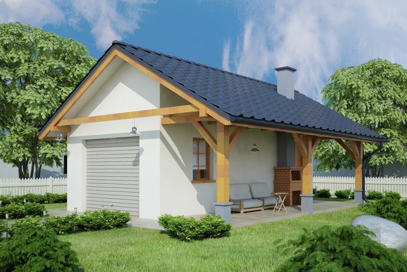 Projekt garażu jednostanowiskowego, parterowego, niepodpiwniczonego, przeznaczonego dla samochodów osobowych z pomieszczeniem gospodarczym i wiatą z kominkiem. Do projektu dołączone jest zestawienie: stali, więźby dachowej oraz stolarki drzwiowej i okiennej, jak równieżbezpłatna zgoda na dokonanie zmian.