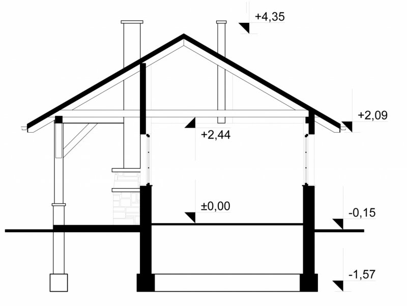 - Wysokość budynku 4.35 m