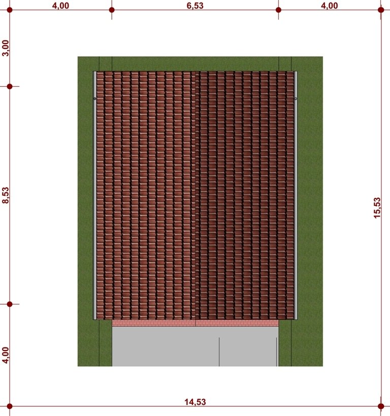 - Min. wymiary działki 15.53x14.53 m