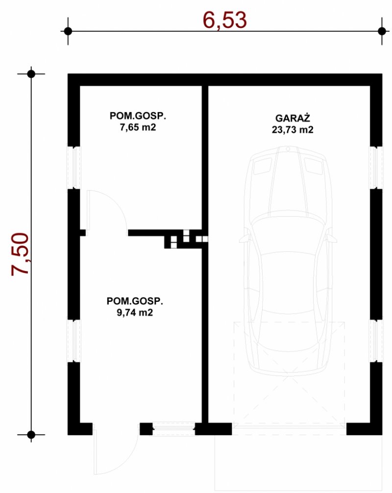 Projekt garażu jednostanowiskowego, parterowego, niepodpiwniczonego, przeznaczonego dla samochodów osobowych z dwoma pomieszczeniami gospodarczymi. Do projektu dołączone jest zestawienie: stali, więźby dachowej oraz stolarki drzwiowej i okiennej, jak równieżbezpłatna zgoda na dokonanie zmian.