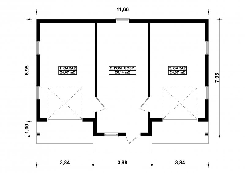 - Min. wymiary działki 11.66x7.95 m