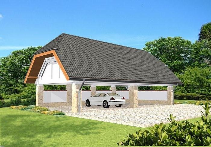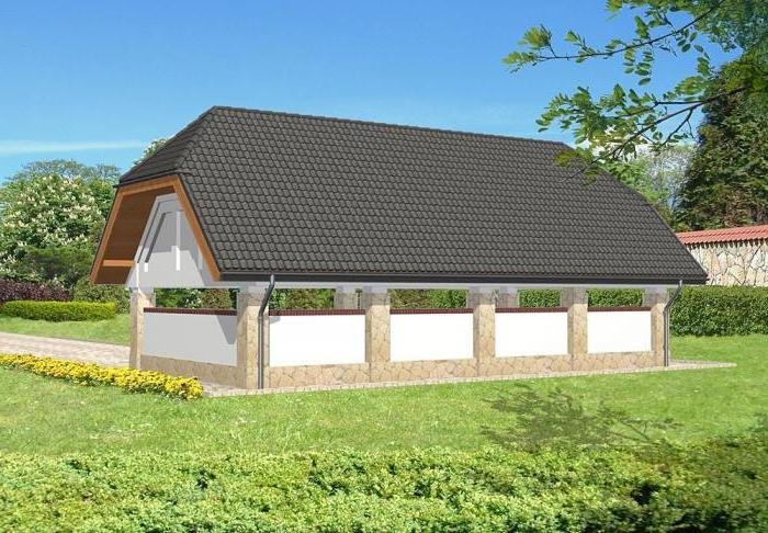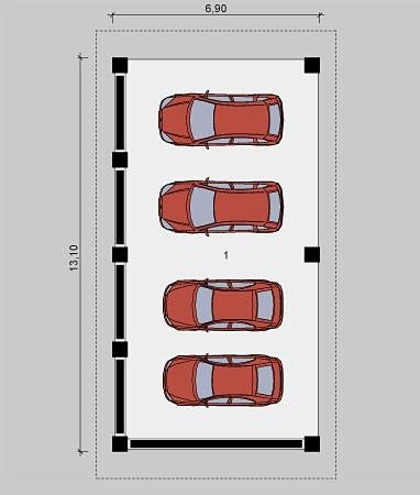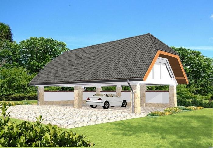 Wolnostojąca wiata garażowa czterostanowiskowa, bez poddasza użytkowego.