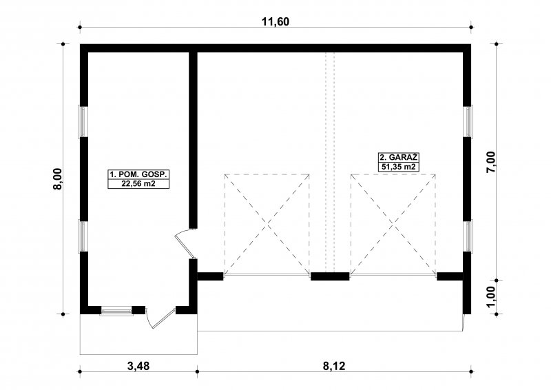 Projekt garażu dwustanowiskowego, parterowego, niepodpiwniczonego, przeznaczonego dla samochodów dostawczych z pomieszczeniem gospodarczym. Do projektu dołączone jest zestawienie: stali, więźby dachowej oraz stolarki drzwiowej i okiennej, jak równieżbezpłatna zgoda na dokonanie zmian.