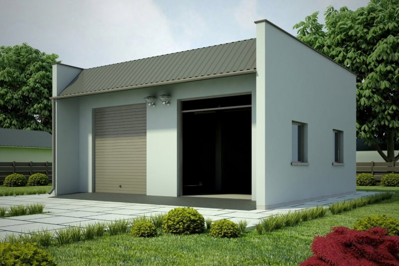 Projekt garażu dwustanowiskowego, parterowego, niepodpiwniczonego, przeznaczonego dla samochodów dostawczych. Do projektu dołączone jest zestawienie: stali, więźby dachowej oraz stolarki drzwiowej i okiennej, jak równieżbezpłatna zgoda na dokonanie zmian.