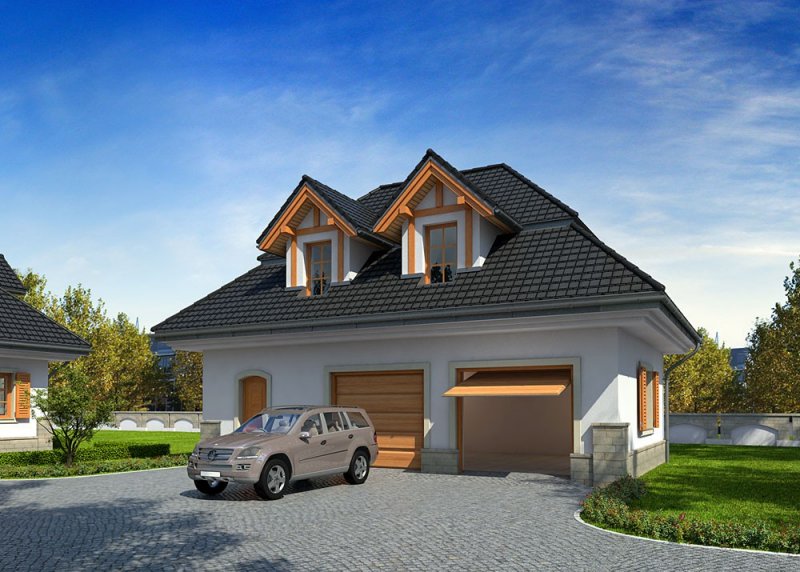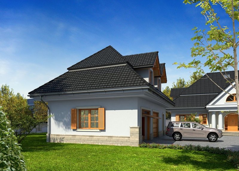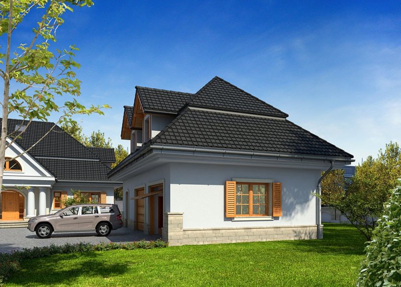 - Pokrycie dachu: dachówką ceramiczną 'Koramic' firmy 'Wienerberger'