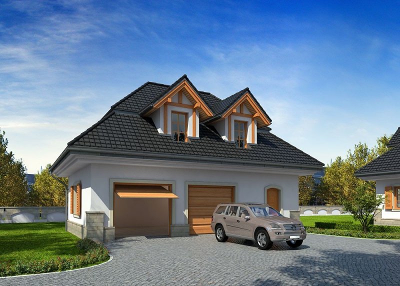 - Elewacje: wykończone tynkiem silikonowym, cokoły wykończone kamieniem naturalnym ciętym