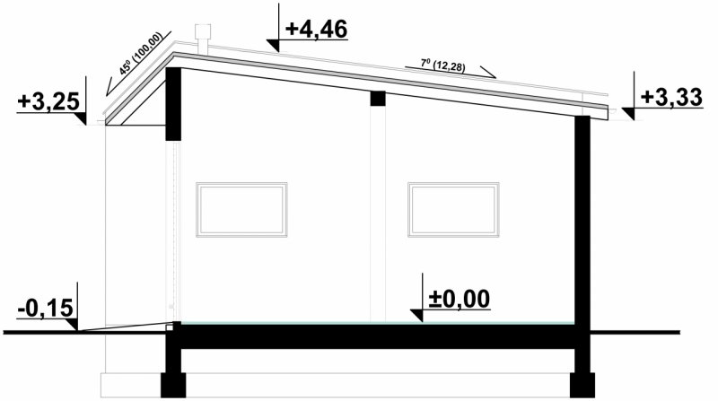 - Kąt nachylenia dachu 7.00°