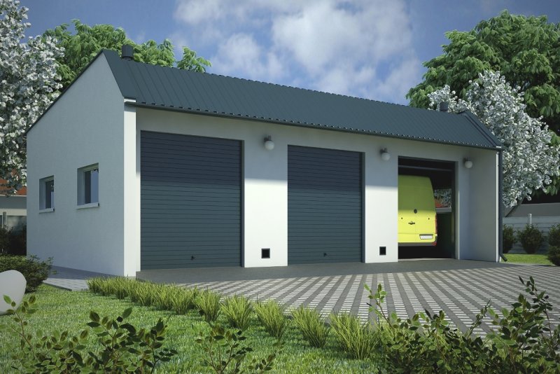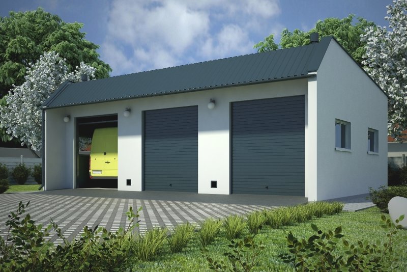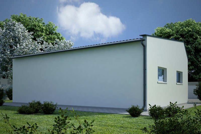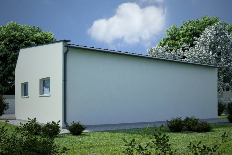 Projekt garażu trzystanowiskowego, parterowego, niepodpiwniczonego, przeznaczonego dla samochodów dostawczych. Do projektu dołączone jest zestawienie: stali, więźby dachowej oraz stolarki drzwiowej i okiennej, jak równieżbezpłatna zgoda na dokonanie zmian.