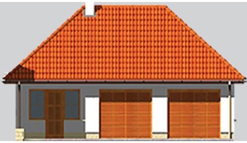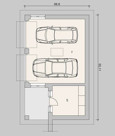 Projekt garażu z dwoma miejscami parkingowymi oraz pomieszczeniem gospodarczym.