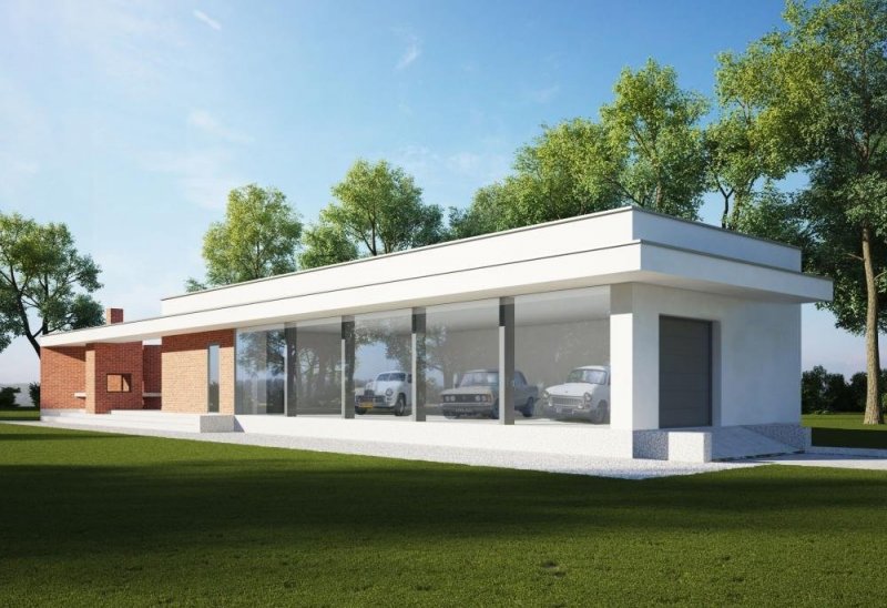 Projekt nowoczesnego garażu, który posiada aż 4 miejsca parkingowe.