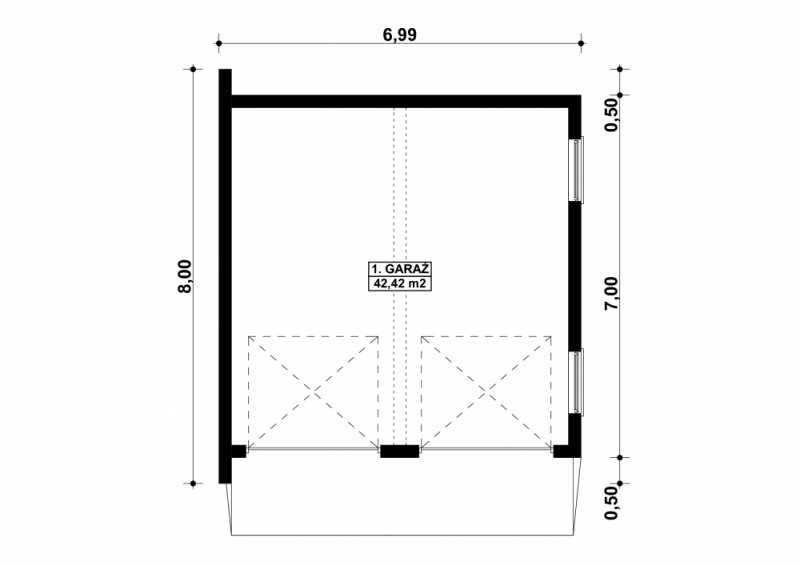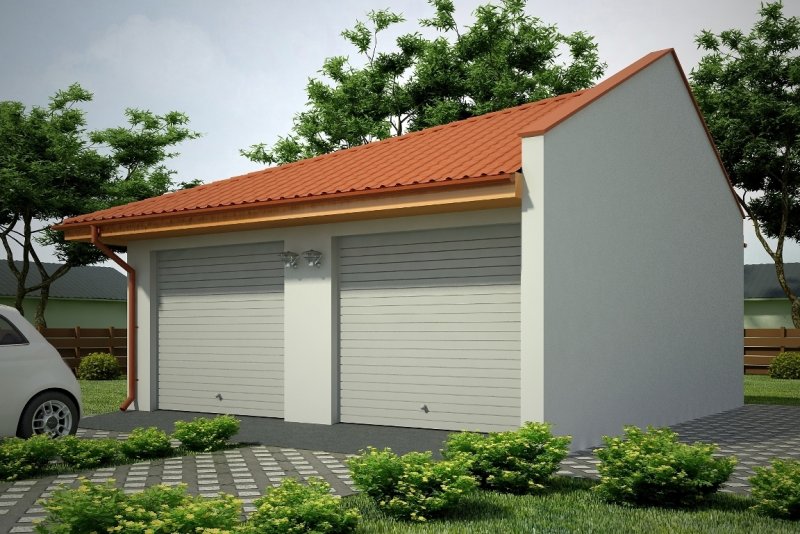 Projekt garażu dwustanowiskowego, parterowego, niepodpiwniczonego, przeznaczonego dla samochodów osobowych. Do projektu dołączone jest zestawienie: stali, więźby dachowej oraz stolarki drzwiowej i okiennej, jak równieżbezpłatna zgoda na dokonanie zmian.