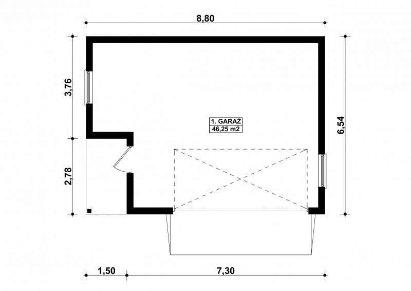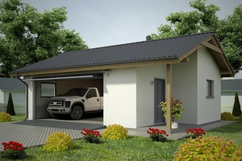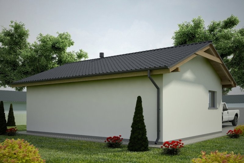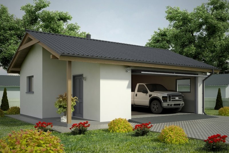 Projekt garażu dwustanowiskowego, parterowego, niepodpiwniczonego, przeznaczonego dla samochodów osobowych. Do projektu dołączone jest zestawienie: stali, więźby dachowej oraz stolarki drzwiowej i okiennej, jak równieżbezpłatna zgoda na dokonanie zmian.