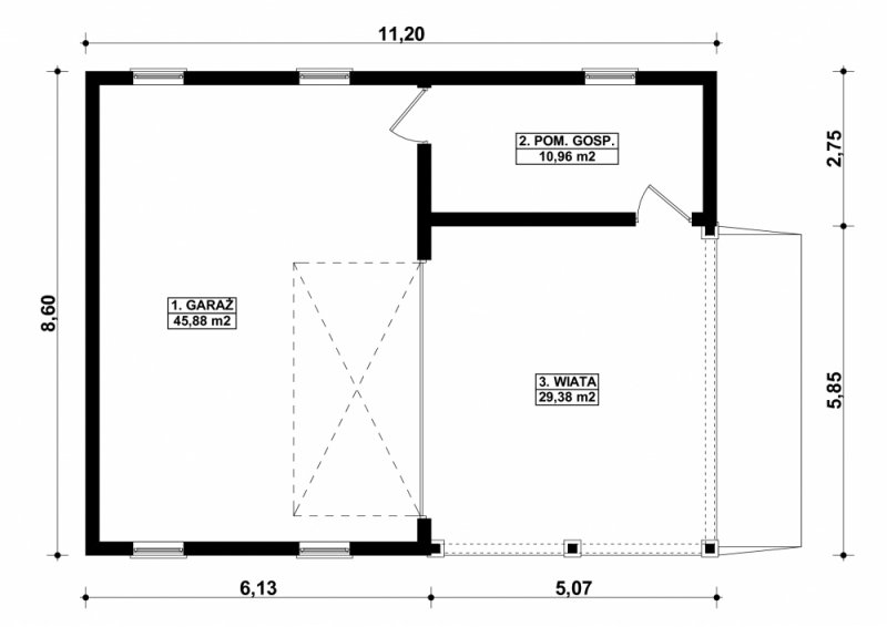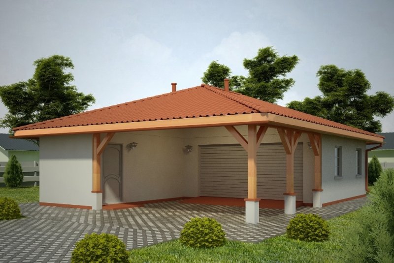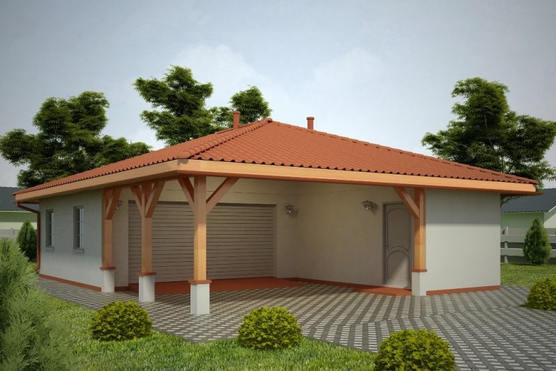 Projekt garażu dwustanowiskowego, parterowego, niepodpiwniczonego, przeznaczonego dla samochodów osobowych z pomieszczeniem gospodarczym i wiatą. Do projektu dołączone jest zestawienie: stali, więźby dachowej oraz stolarki drzwiowej i okiennej, jak równieżbezpłatna zgoda na dokonanie zmian.