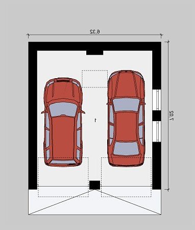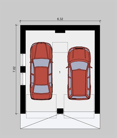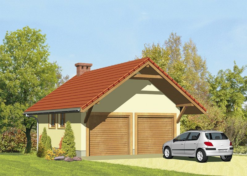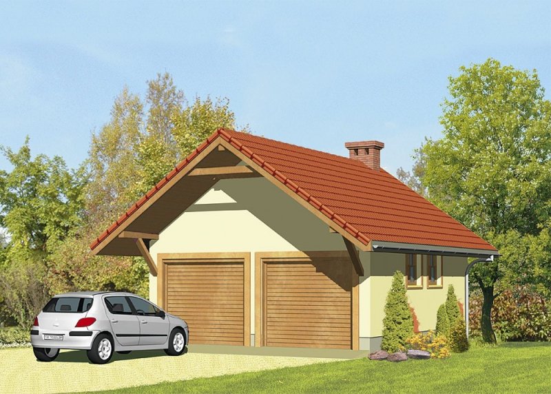 Garaż wolnostojący z dwoma miejscami parkingowymi.