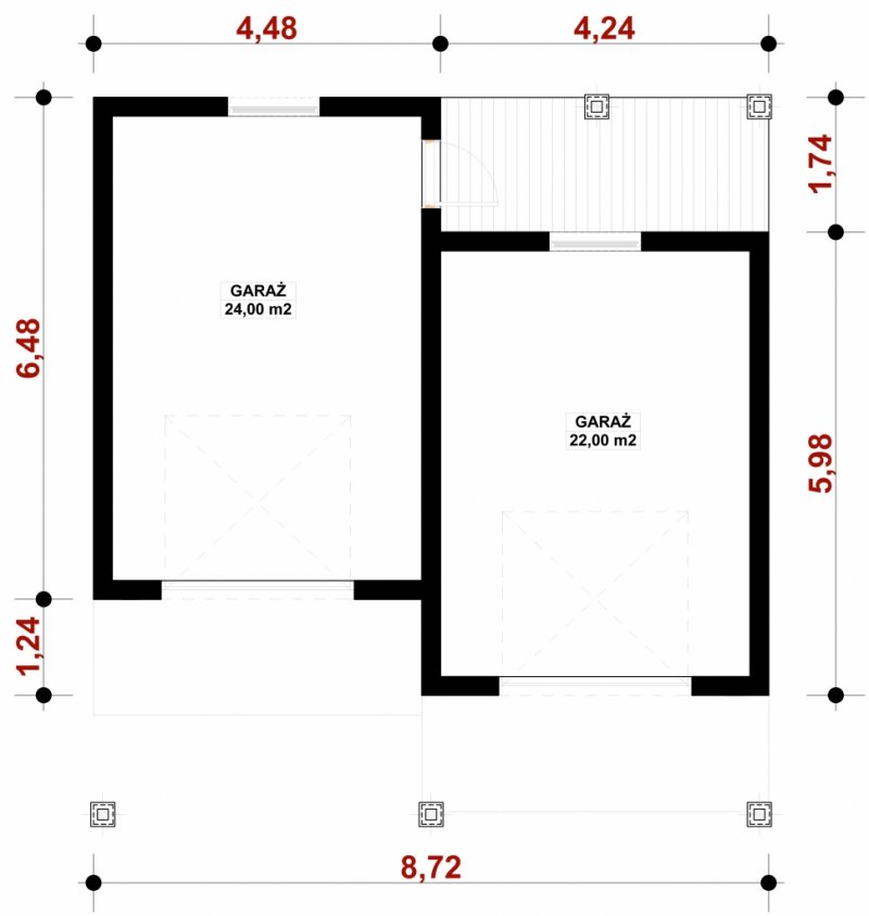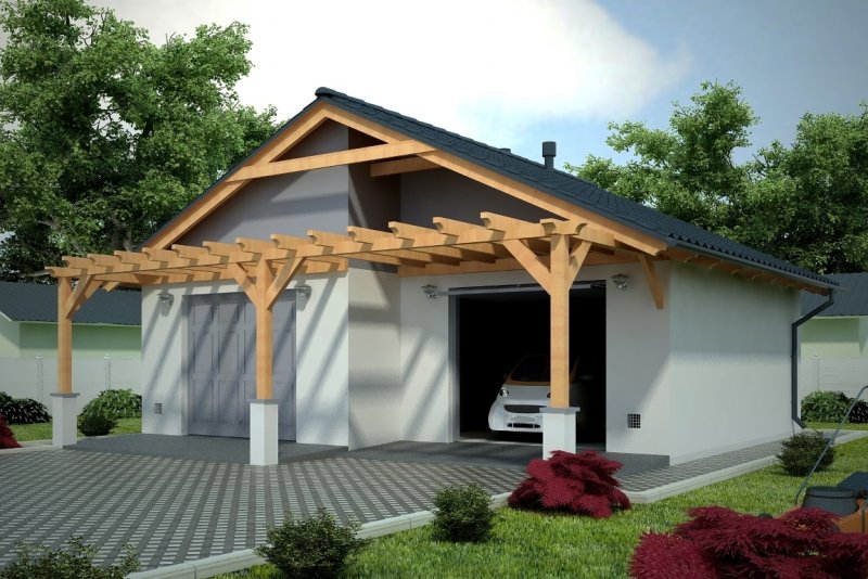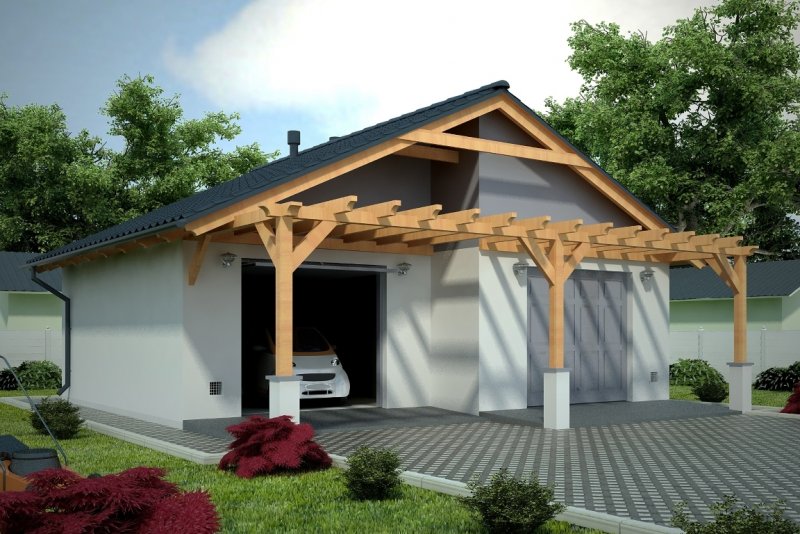 Projekt garażu dwustanowiskowego, parterowego, niepodpiwniczonego, przeznaczonego dla samochodów osobowych z tarasem. Do projektu dołączone jest zestawienie: stali, więźby dachowej oraz stolarki drzwiowej i okiennej, jak równieżbezpłatna zgoda na dokonanie zmian.