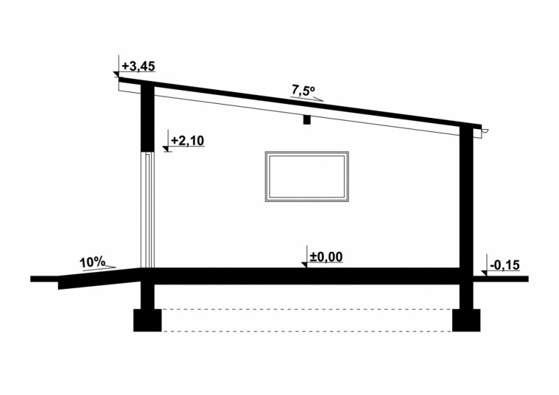 - Kąt nachylenia dachu 7.50°