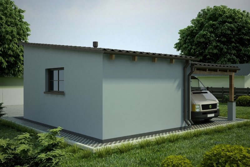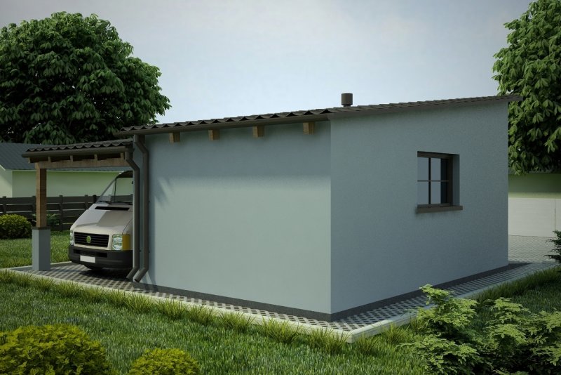 Projekt garażu jednostanowiskowego, parterowego, niepodpiwniczonego, przeznaczonego dla samochodów osobowych, z wiatą. Do projektu dołączone jest zestawienie: stali, więźby dachowej oraz stolarki drzwiowej i okiennej, jak równieżbezpłatna zgoda na dokonanie zmian.