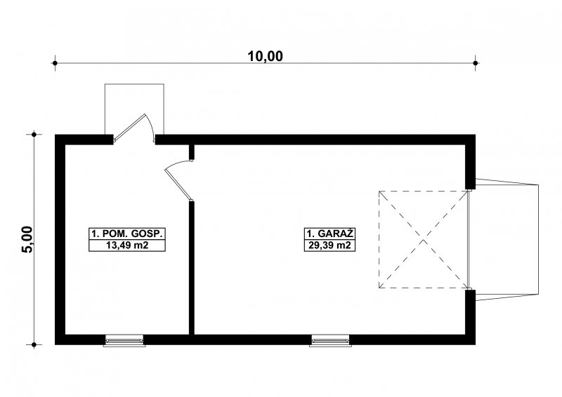 Projekt garażu jednostanowiskowego, parterowego, nie podpiwniczonego, przeznaczonego dla samochodów osobowych z pomieszczeniem gospodarczym. Do projektu dołączone jest zestawienie: stali, więźby dachowej oraz stolarki drzwiowej i okiennej, jak równieżbezpłatna zgoda na dokonanie zmian.