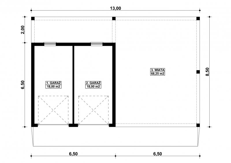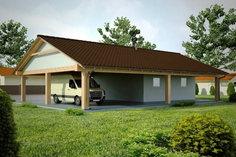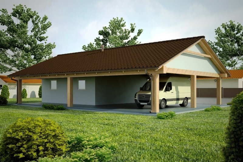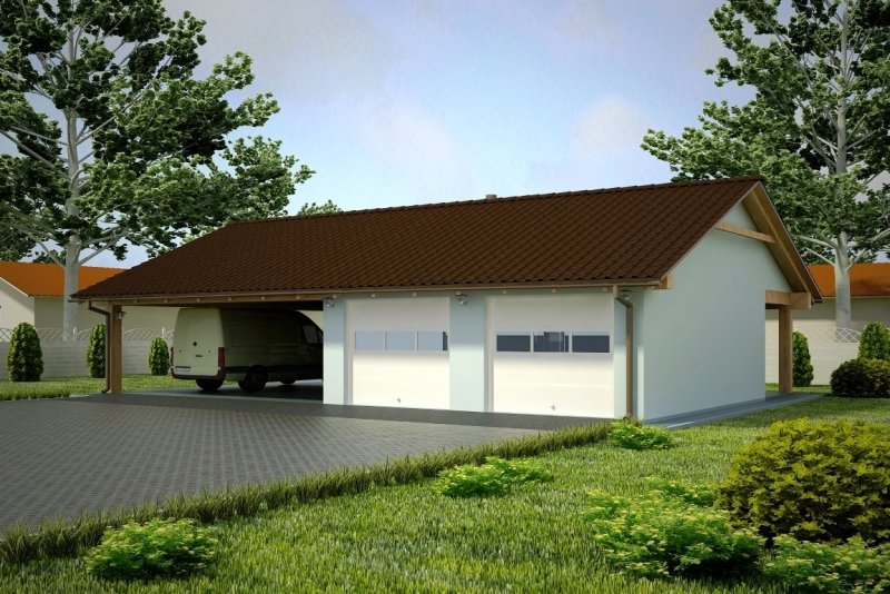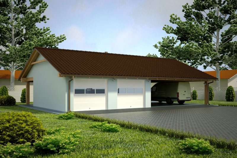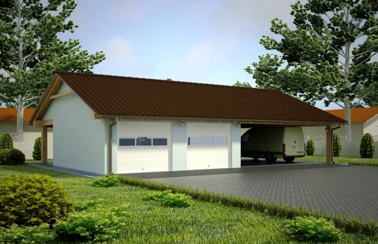 Projekt garażu dwustanowiskowego, parterowego, niepodpiwniczonego, przeznaczonego dla samochodów osobowych, z wiatą. Do projektu dołączone jest zestawienie: stali, więźby dachowej oraz stolarki drzwiowej i okiennej, jak równieżbezpłatna zgoda na dokonanie zmian