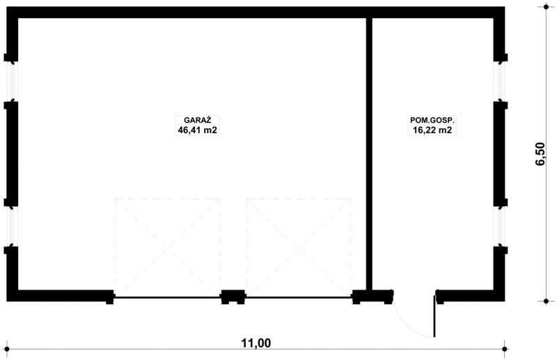 Projekt garażu dwustanowiskowego, parterowego, niepodpiwniczonego, przeznaczonego dla samochodów osobowych z pomieszczeniem gospodarczym. Do projektu dołączone jest zestawienie: stali, więźby dachowej oraz stolarki drzwiowej i okiennej, jak równieżbezpłatna zgoda na dokonanie zmian.