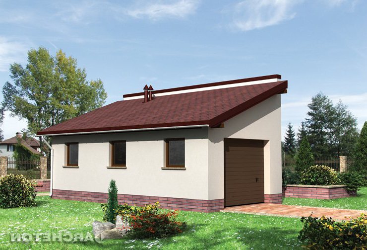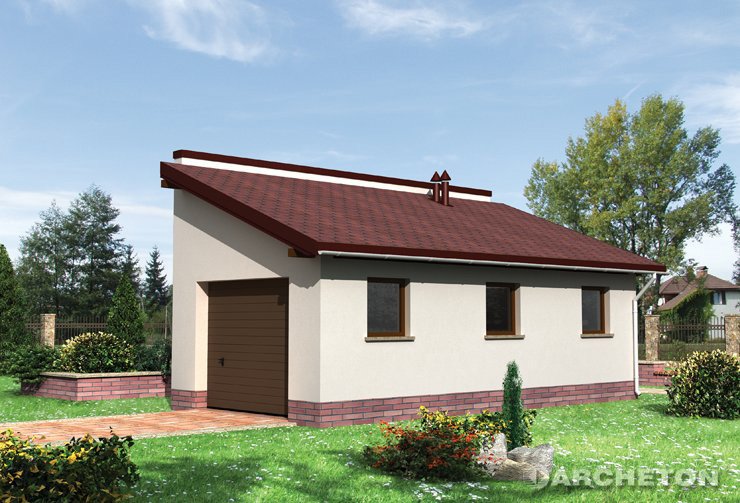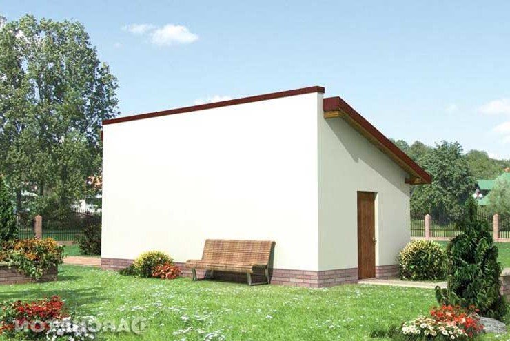 Garaż jednostanowiskowy z pomieszczeniem gospodarczym.