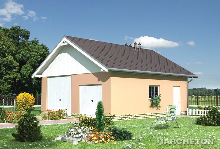 Garaż jednostanowiskowy, z pomieszczeniem gospodarczym i strychem użytkowym.
