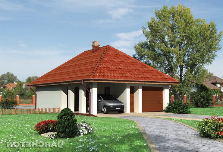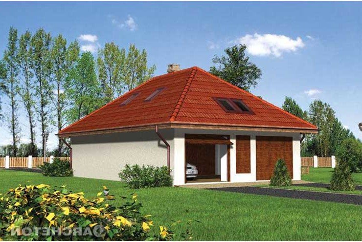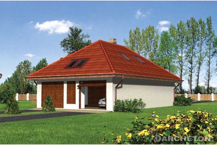 Garaż trzystanowiskowy, ze strychem użytkowym.