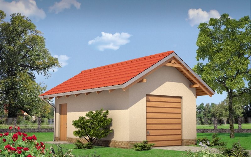 Budynek garażowo – gospodarczy zaprojektowano jako parterowy z nieużytkowym poddaszem przeznaczony do parkowania 1 samochodu.