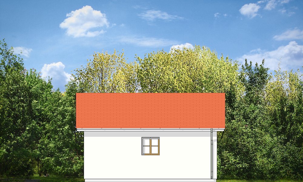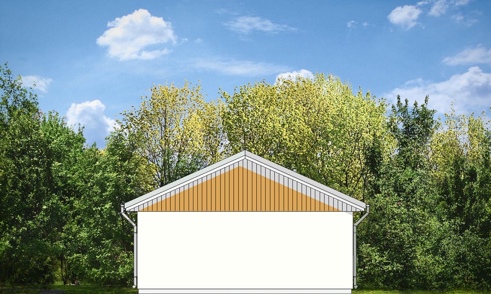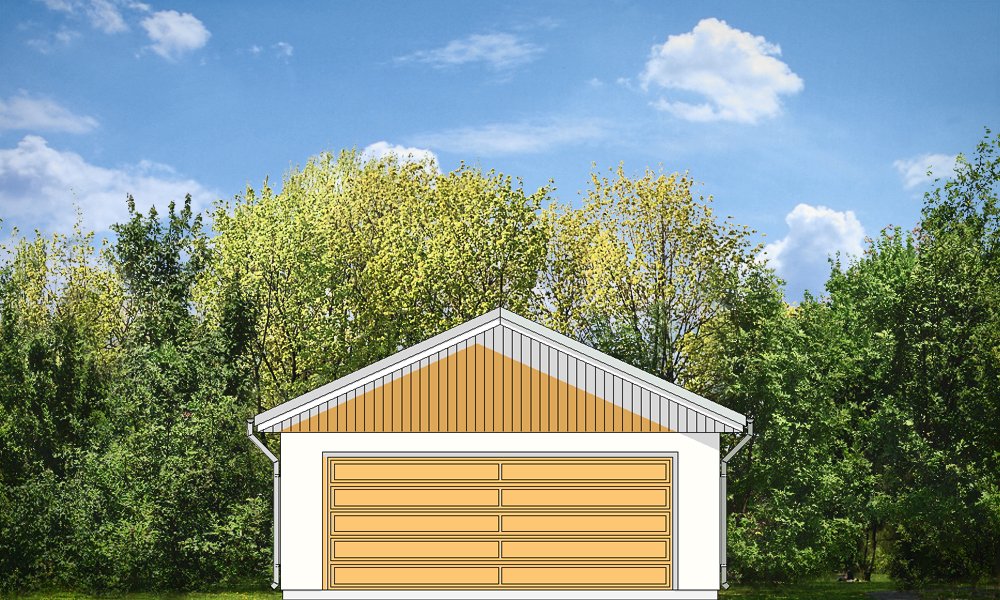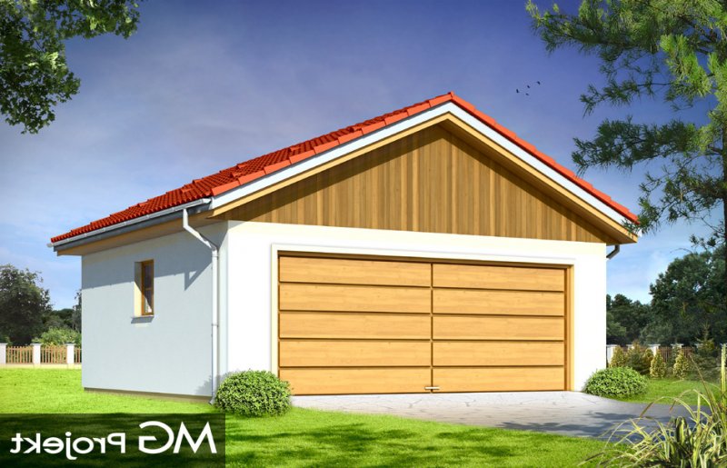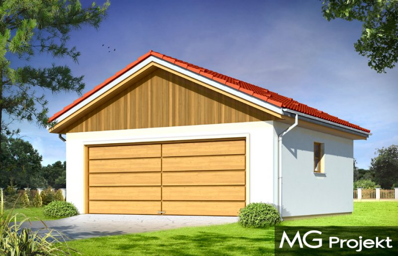 Garaż dwustanowiskowy przykryty dachem dwuspadowym.