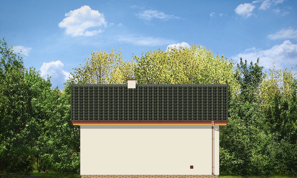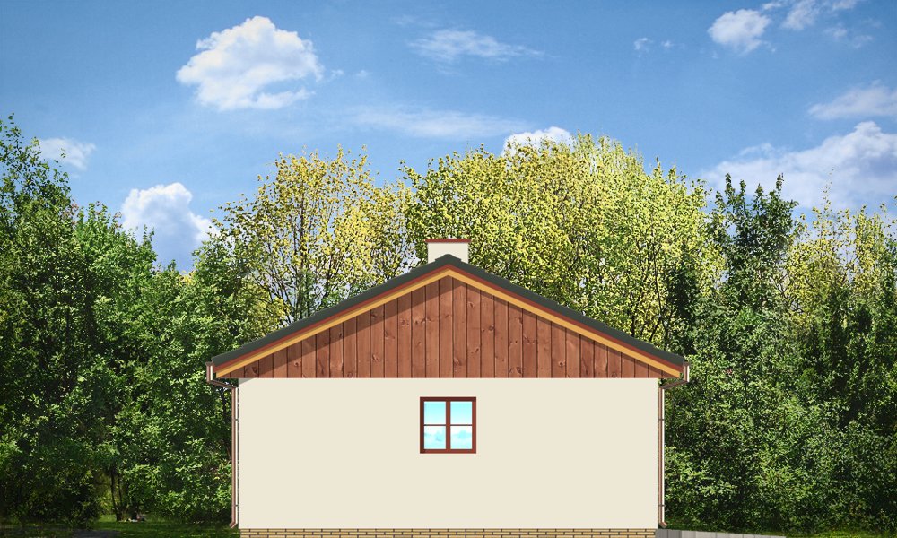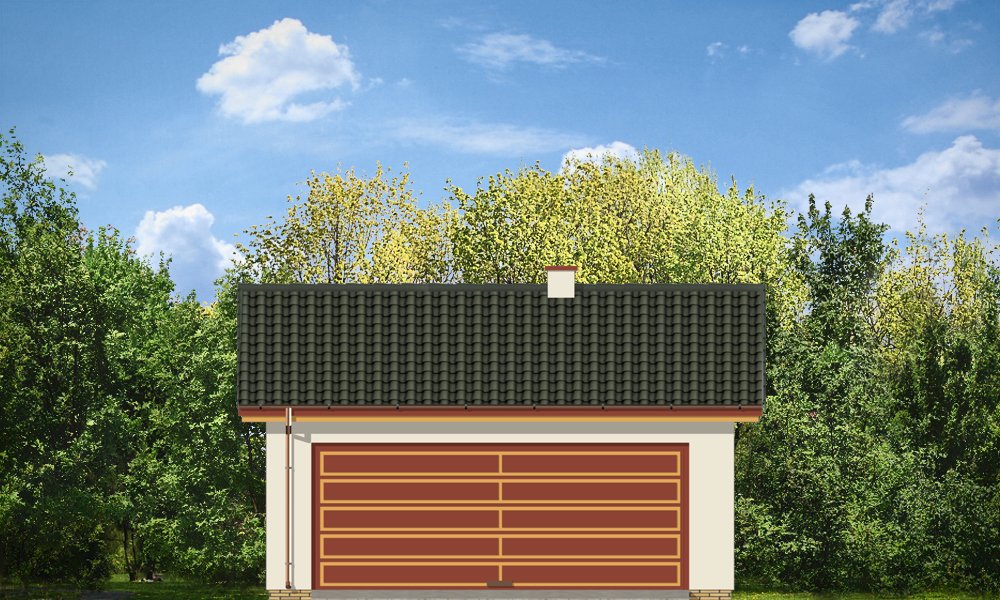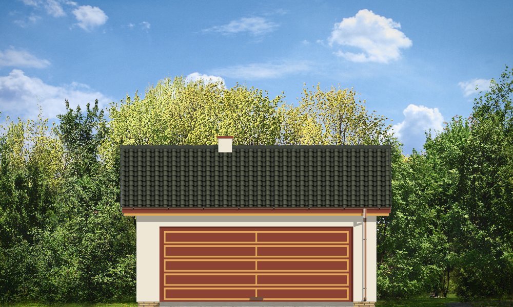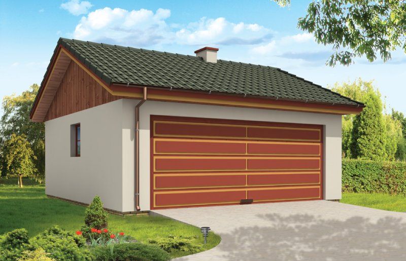 Garaż dwustanowiskowy przykryty dachem dwuspadowym.