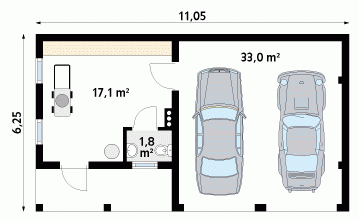 Garaż dwustanowiskowy, wolno stojący z pomieszczeniem gospodarczym i wc.