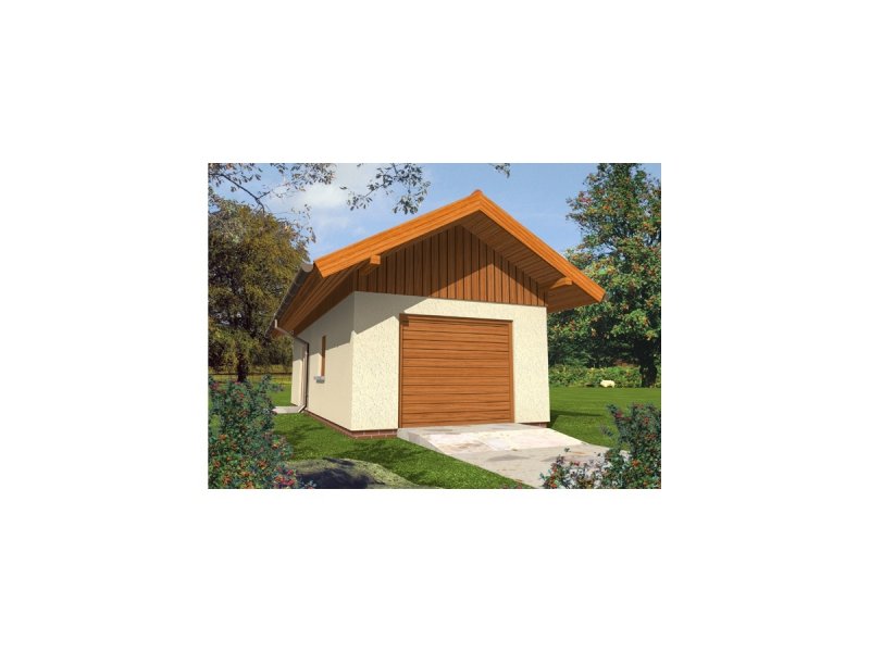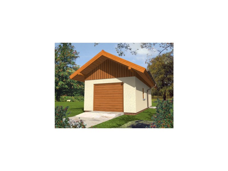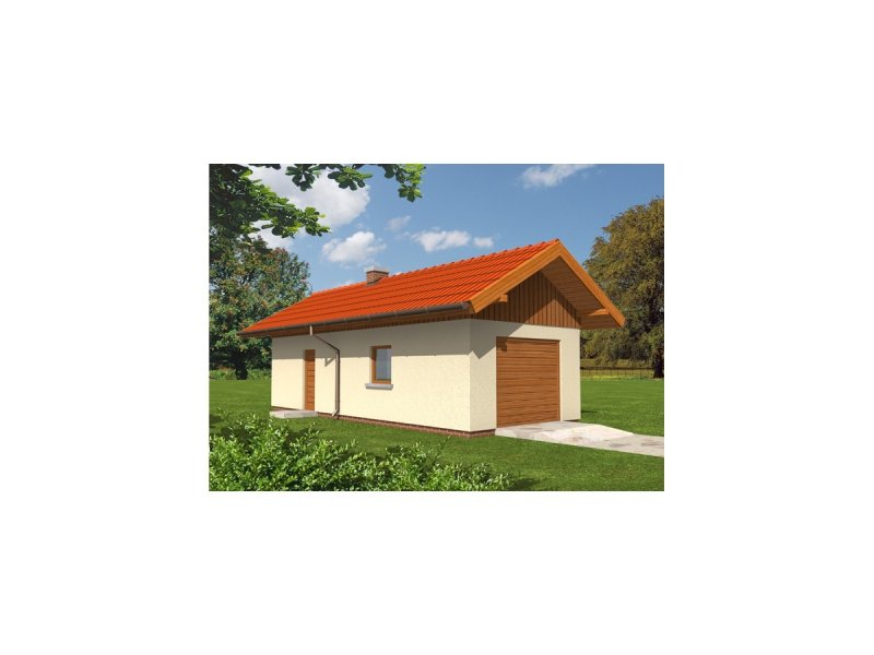 Garaż jednostanowiskowy z pomieszczeniem gospodarczym niepodpiwniczony kryty dachem dwuspadowym.