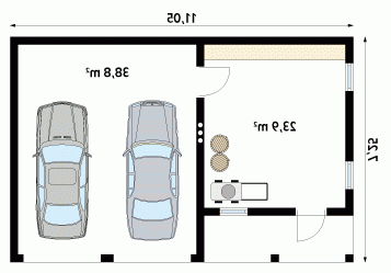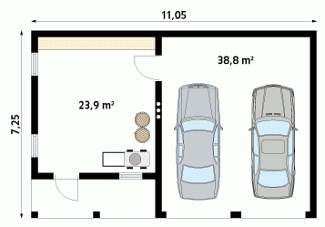 Garaż dwustanowiskowy, wolno stojący z pomieszczeniem gospodarczym.