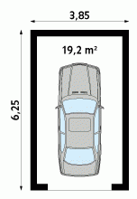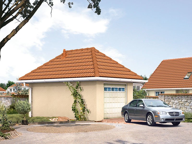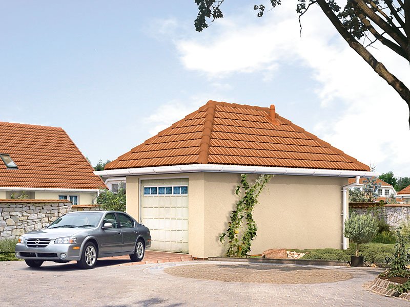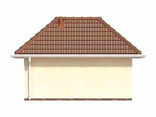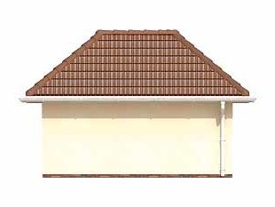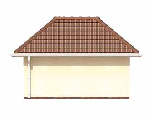 Garaż jednostanowiskowy, wolno stojący. Dach czterospadowy.