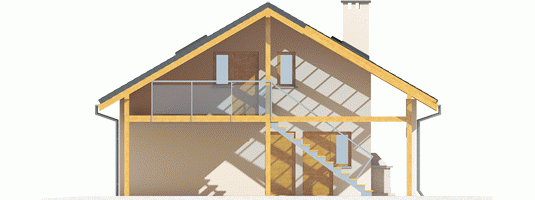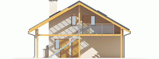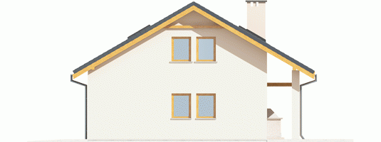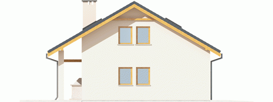 Garaż zaprojektowany w technologii murowej ze stropem drewnianym. Dach dwuspadowy o konstrukcji drewnianej pokryty dachówką cementową IBF.