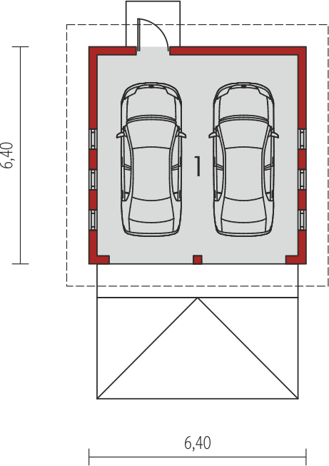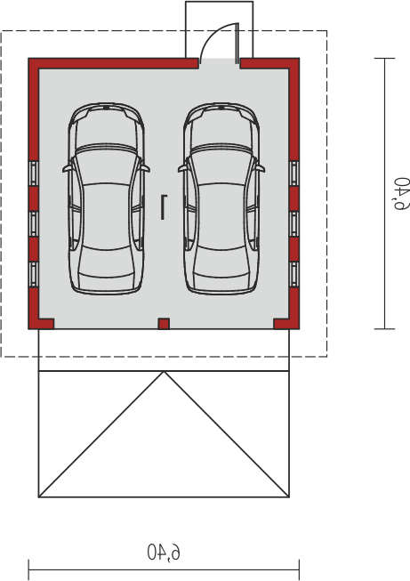 Garaż dwustanowiskowy niepodpiwniczony z dwoma pojedynczymi wrotami garażowymi.