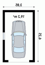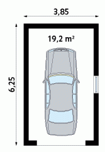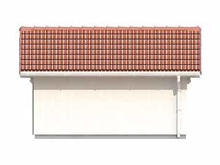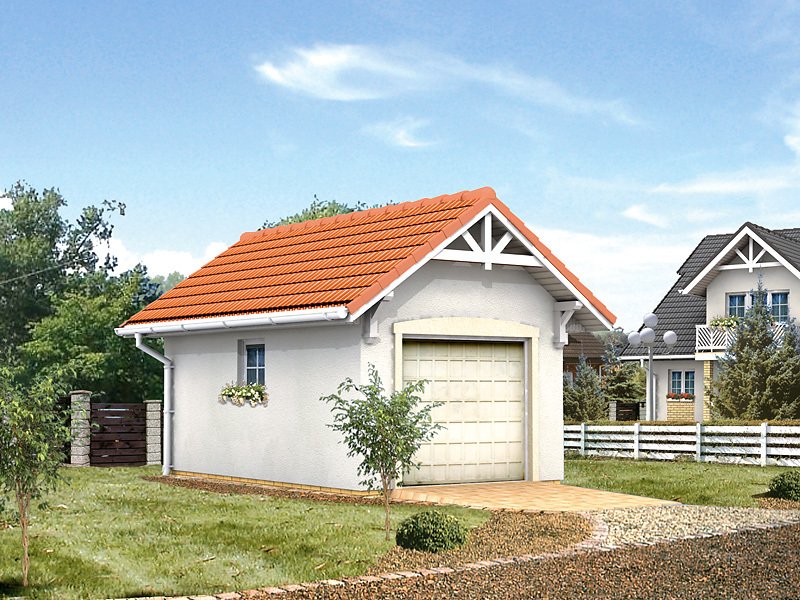 Garaż jednostanowiskowy, wono stojący. Dach dwuspadowy.