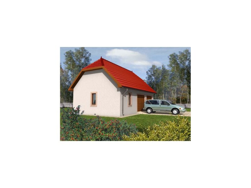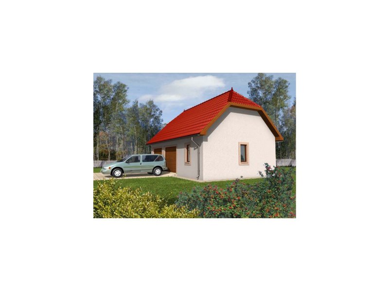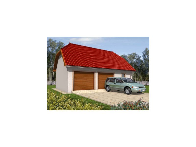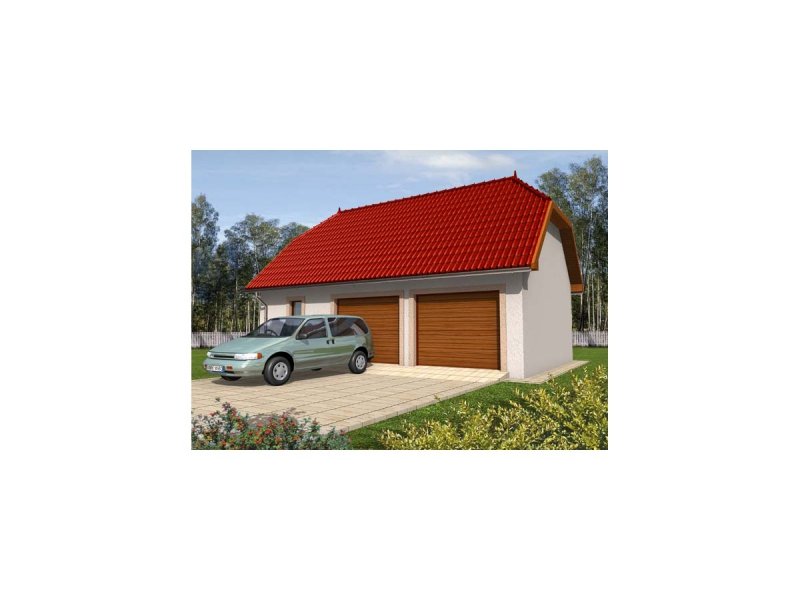 Garaż zaprojektowano w technologii murowej ze stropem drewnianym. Dach dwuspadowy o konstrukcji drewnianej pokryto dachówką cementową lub ceramiczną. Elewację wykonano z tynku strukturalnego. Stolarka okienna i drzwiowa drewniana.