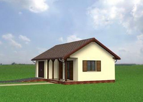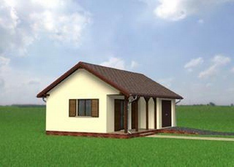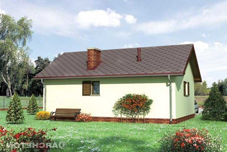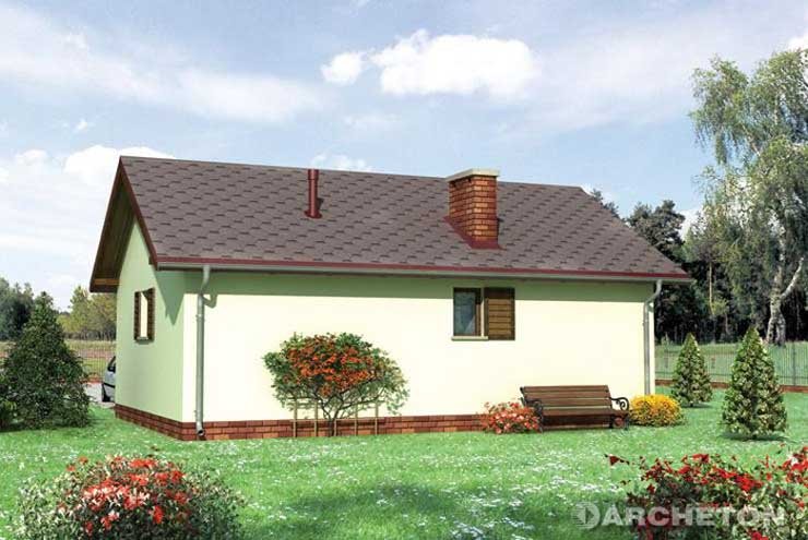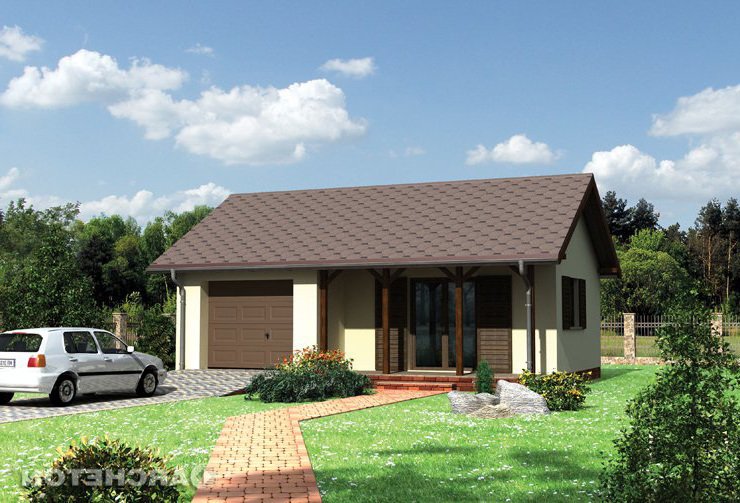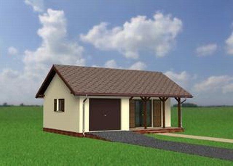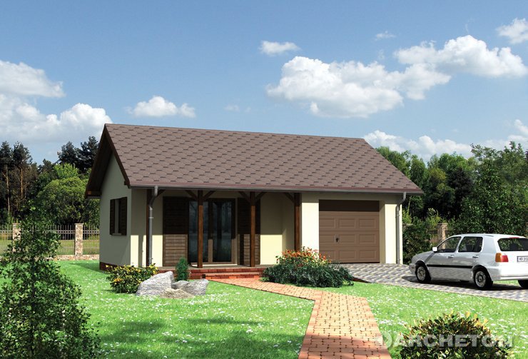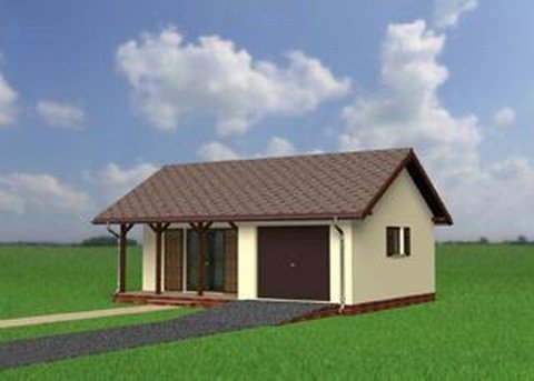 Budynek parterowy z garażem jednostanowiskowym i częścią mieszkalną.