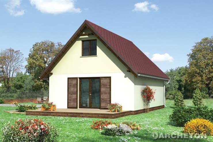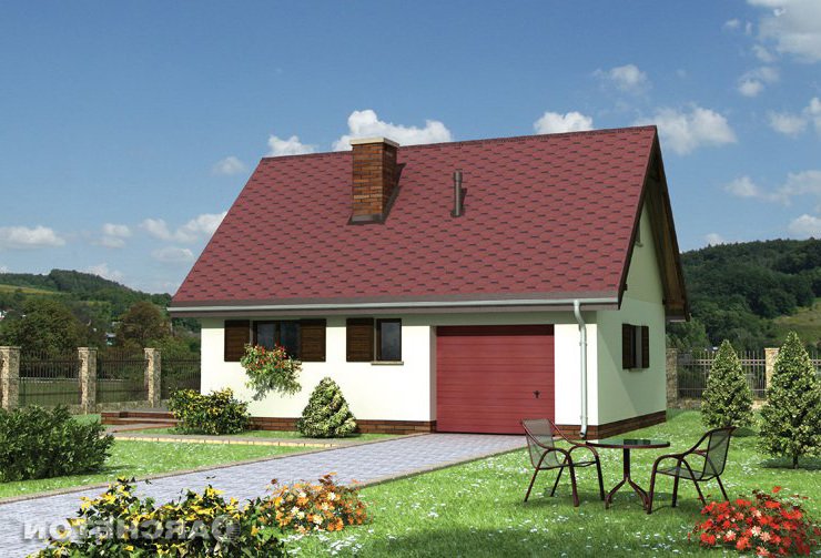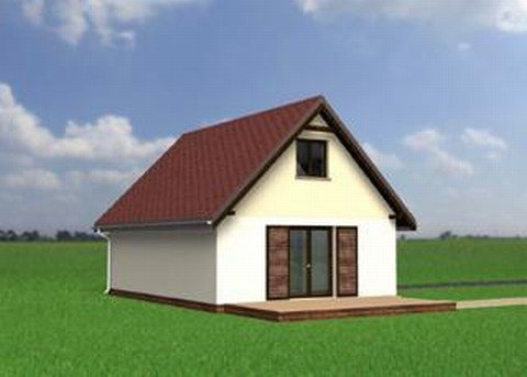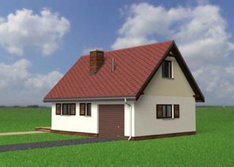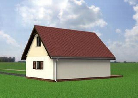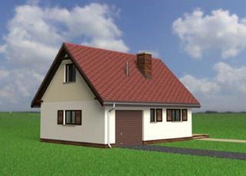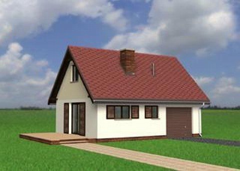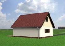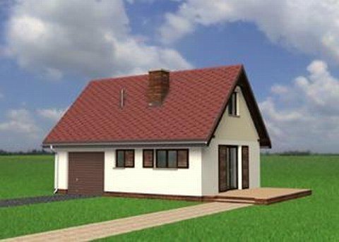 Budynek parterowy z garażem jednostanowiskowym, częścią mieszkalną i strychem użytkowym.