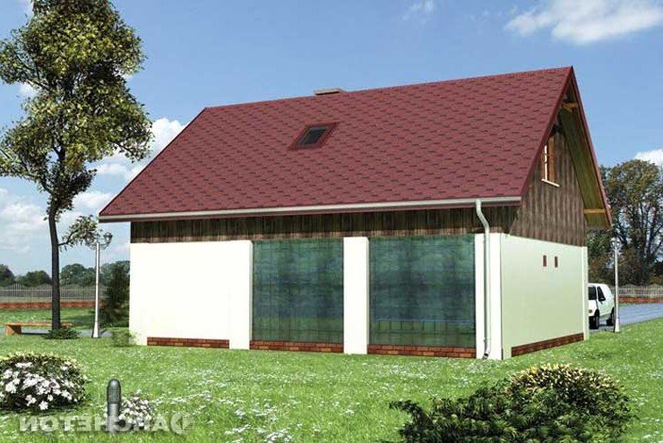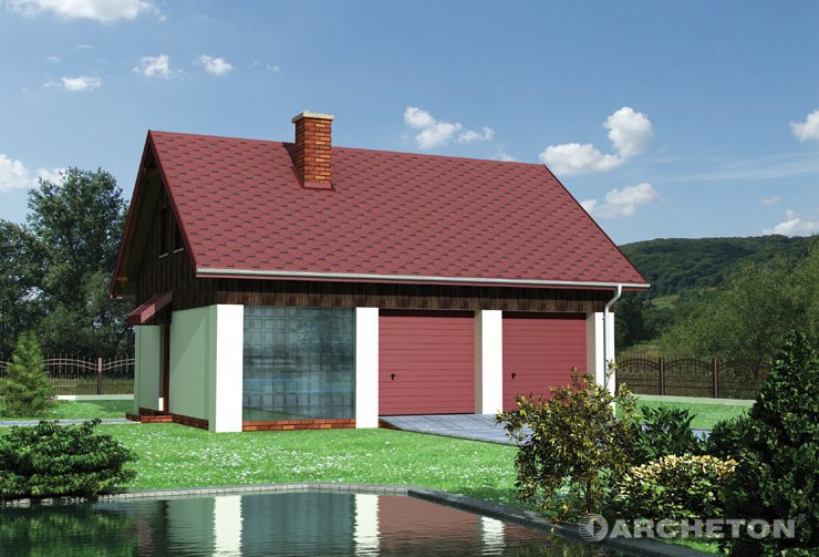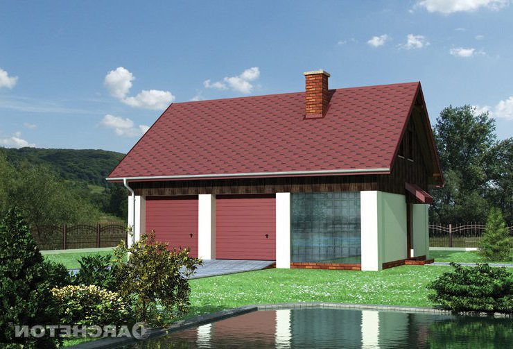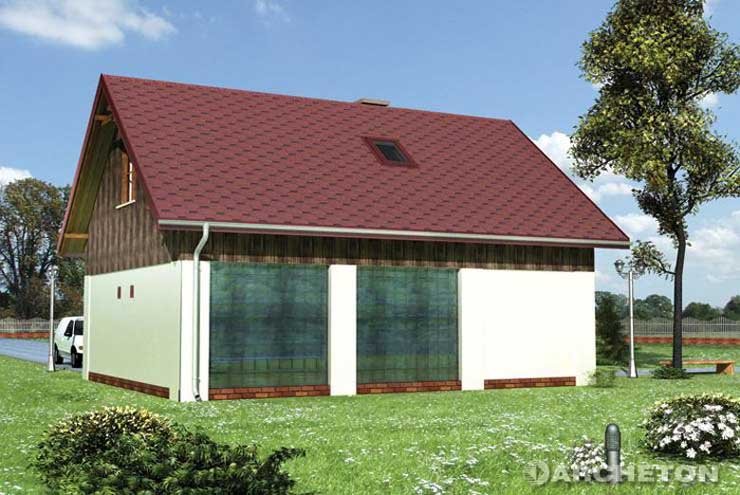 Garaż dwustanowiskowy z pomieszczeniem godpodarczym na parterze oraz z częścią mieszkalną na poddaszu.