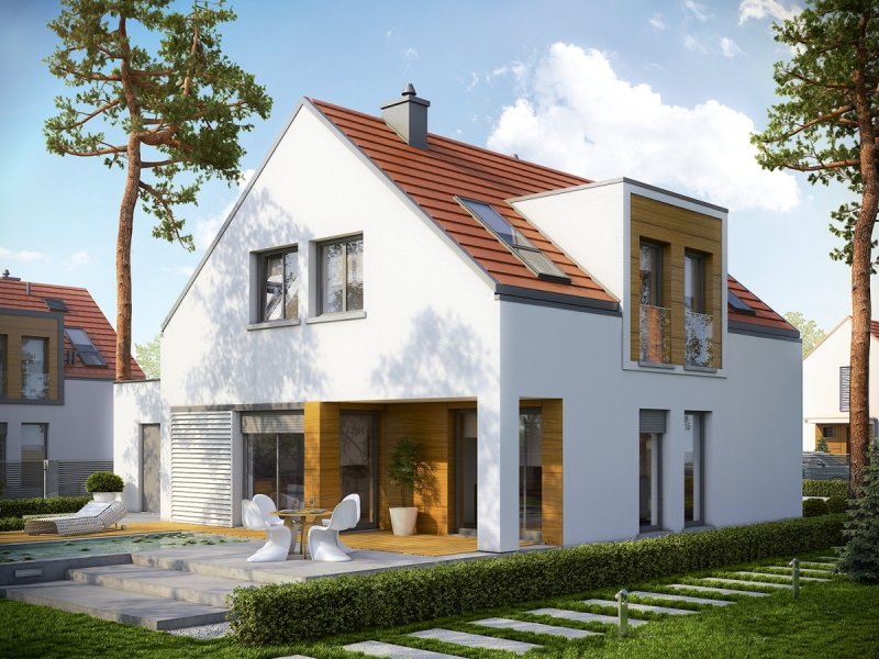 Pedro II G1 ENERGO to dom, który łączy atrakcyjną formę, ergonomiczną funkcjonalność i nowoczesne, energooszczędne rozwiązania. Planując rozkład pomieszczeń, uwzględniono strefowanie temperaturowe, dzięki czemu optymalnie zaprojektowano funkcje. Życie dzienne domowników koncentruje się wokół przestronnego salonu, który dzięki dużym przeszkleniom bezpośrednio łączy się z tarasem. Strefa nocna została zaplanowana na poddaszu. Pomysłowo wykorzystano przestrzeń nad garażem, dzięki czemu główna sypialnia zyskała dostęp do tarasu z widokiem na piękno okolicy. Wygląd zewnętrzny budynku to udany mariaż tradycji z nowoczesnością.