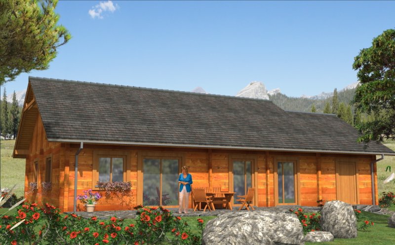 Ściany zewnętrzne: z bali drewnianych gr. 12, 16, 20, 24, 30 cm. ocieplone od wewnątrz wełną mineralną, gr. 52 cm bez ocieplenia