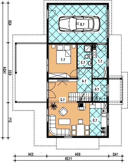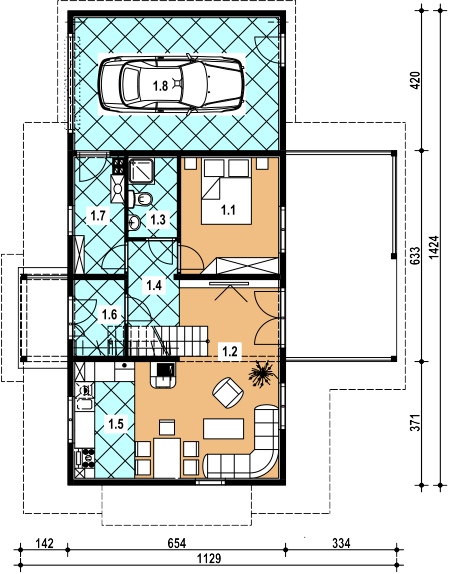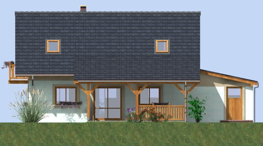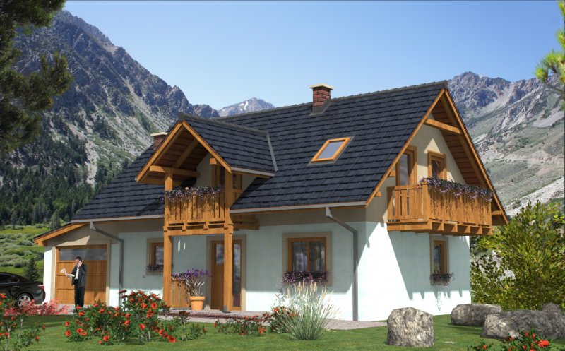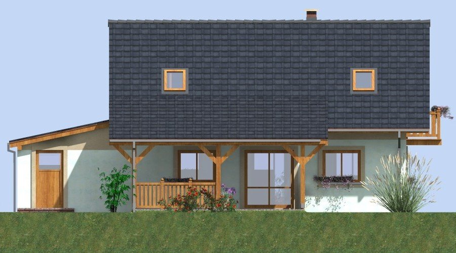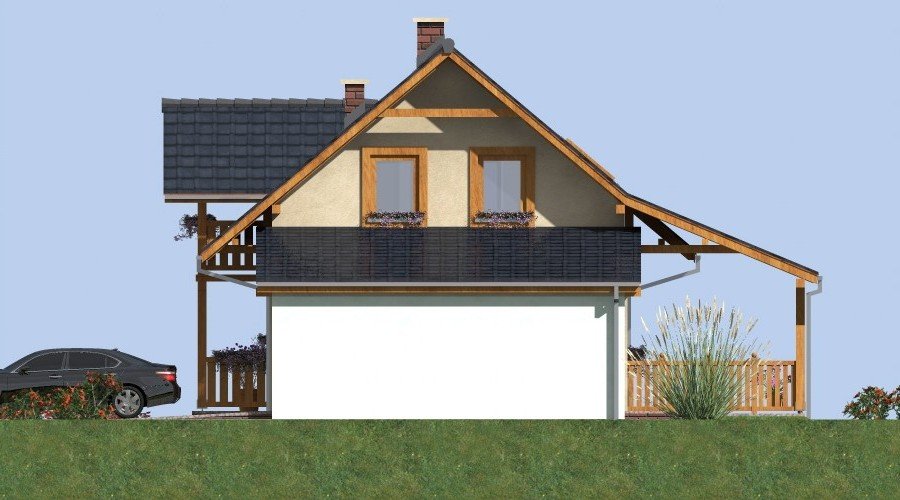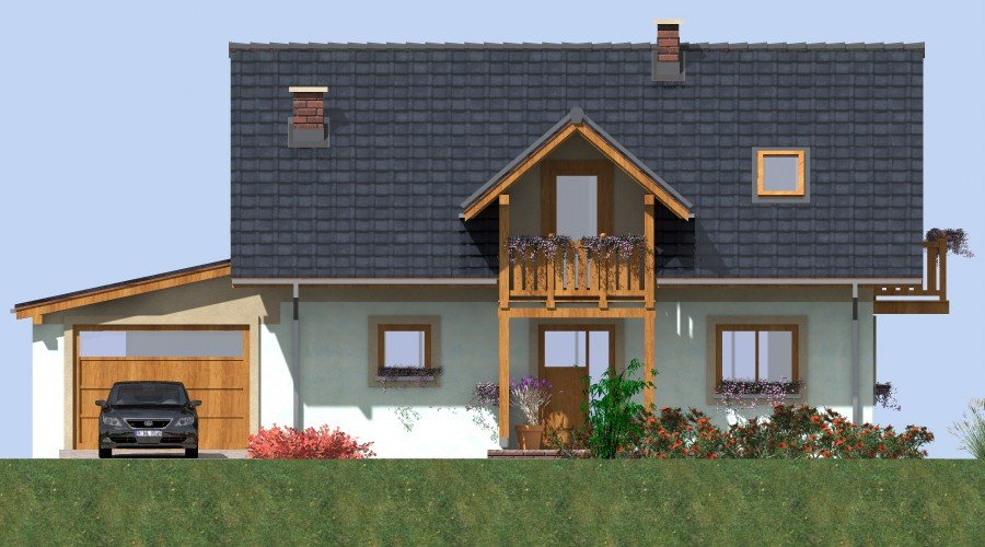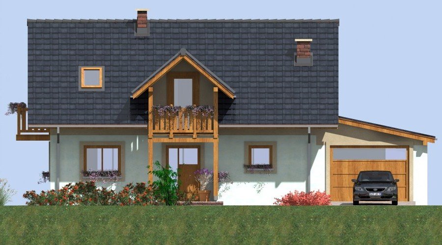 Budynek jednorodzinny, parterowy z poddaszem użytkowym, niepodpiwniczony, 4 pokoje, kuchnia, garaż.