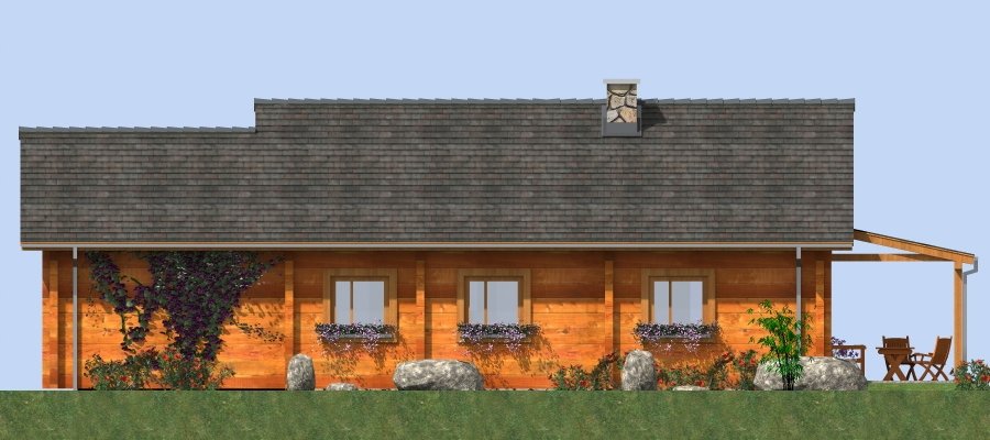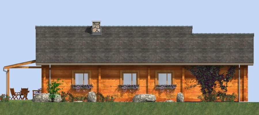 Ściany zewnętrzne: z bali drewnianych gr. 12, 16, 20, 24, 30 cm. ocieplone od wewnątrz wełną mineralną, gr. 52 cm bez ocieplenia