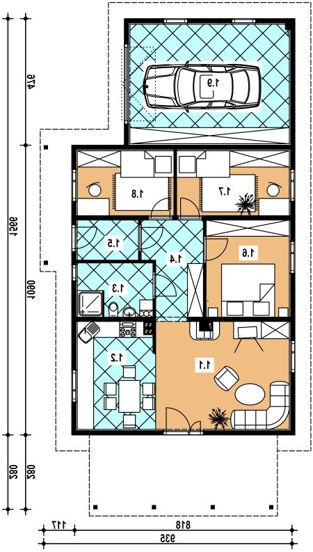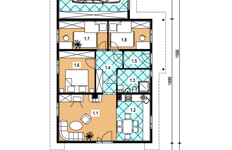 Budynek jednorodzinny, parterowy, niepodpiwniczony, 4 pokoje, kuchnia, garaż.