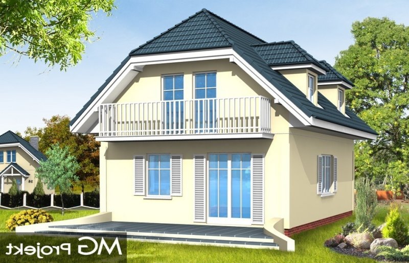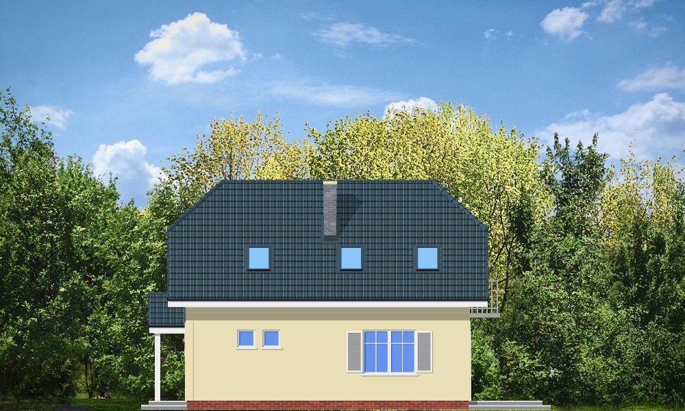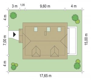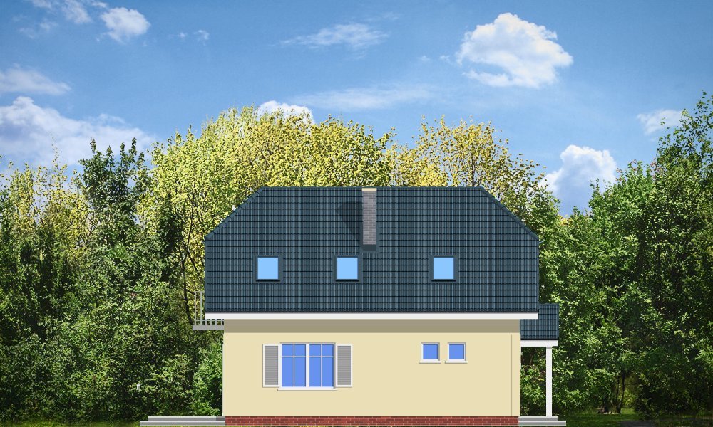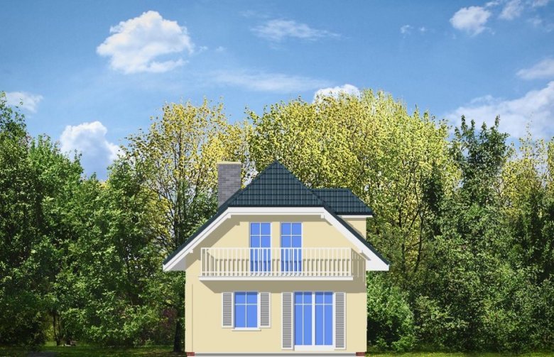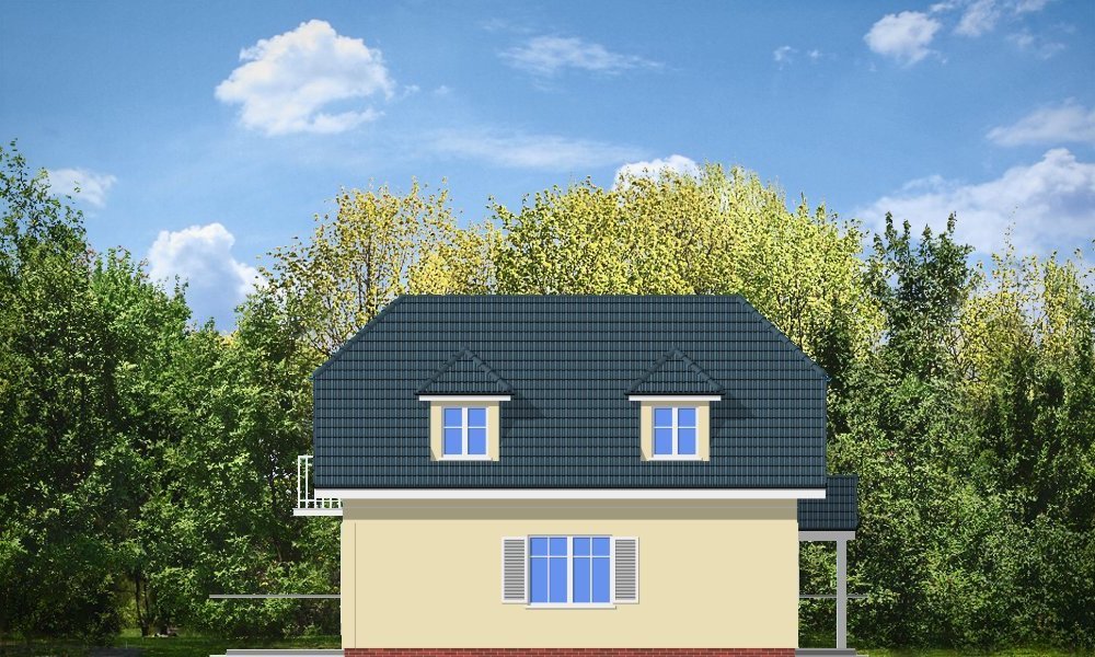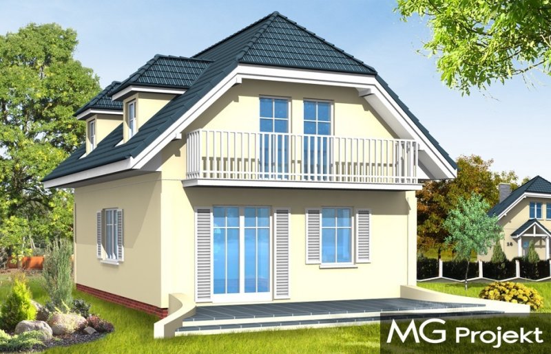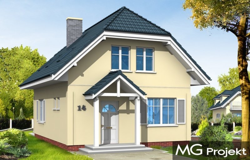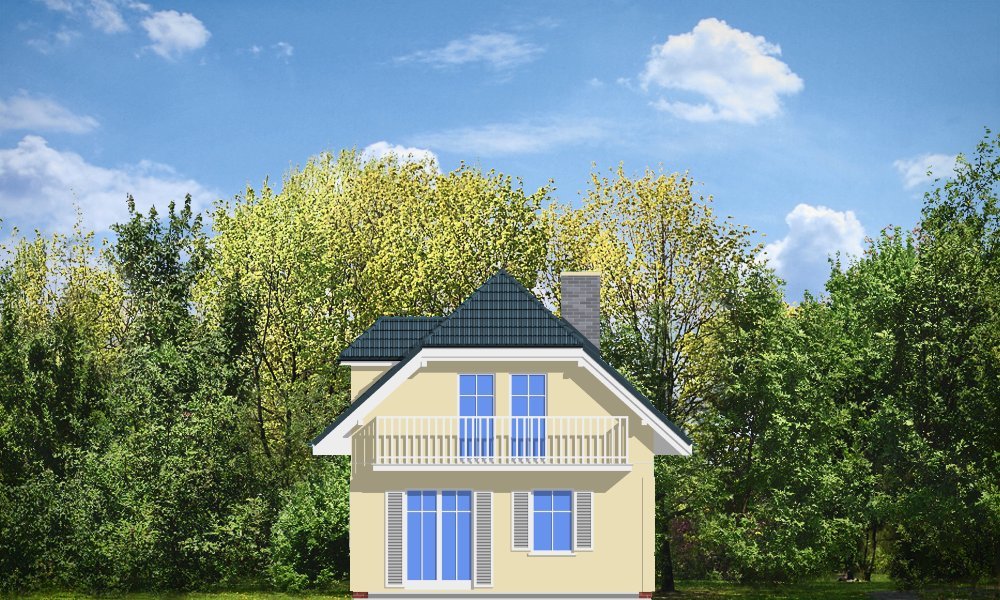 Idealna propozycja dla czteroosobowej rodziny. Dom został zaprojektowany z naczółkowym dachem. Wnętrze ukształtowano z podziałem na część ogólną, dzienną - z salonem oraz część prywatną oraz nocną z trzema sypialniami i łazienką. Dostępna jest wersja projektu w odbiciu lustrzanym. Projekt występuje w wersjach wariantowych z garażem dobudowanym z boku domu lub garażem od strony elewacji frontowej (D03 z garażem) - jako propozycja na bardzo wąską działkę.