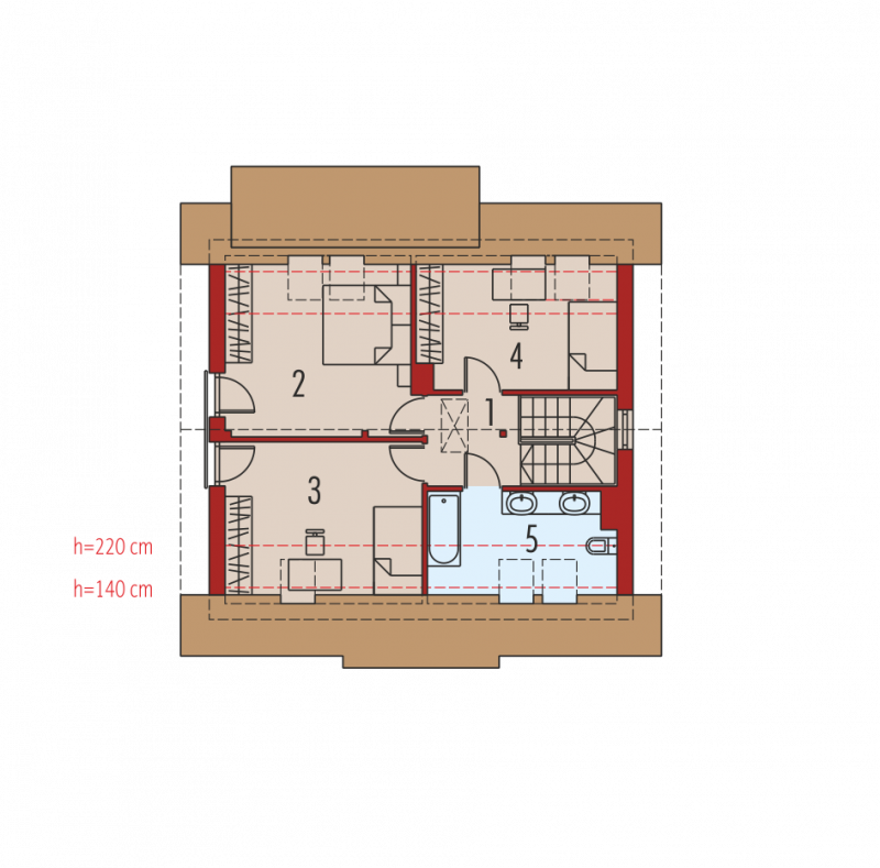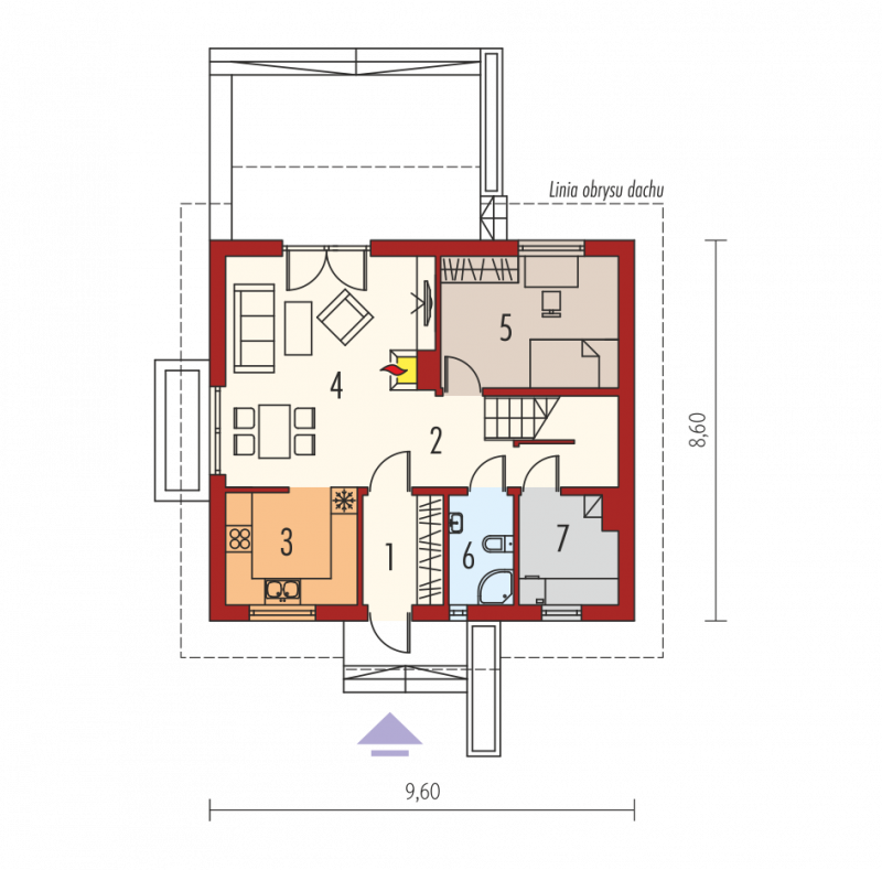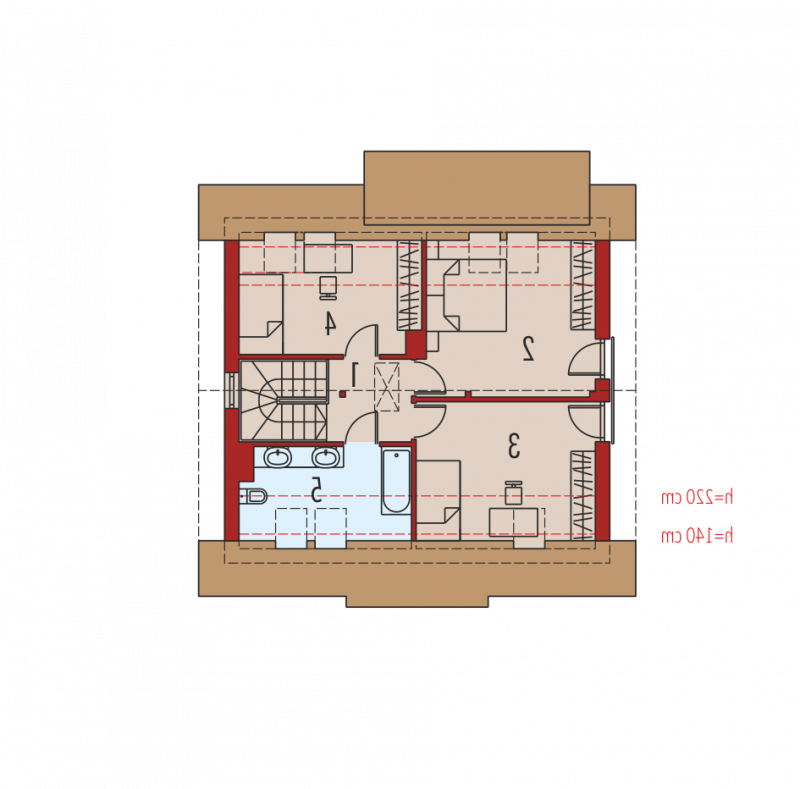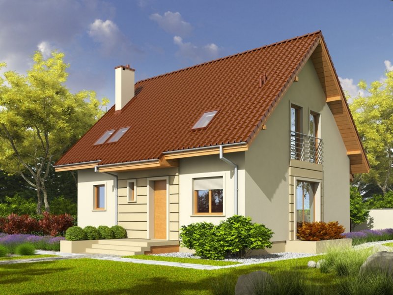 Dom parterowy z poddaszem użytkowym, niepodpiwniczony. Przeznaczony dla 4-5-osobowej rodziny. Na parterze zaprojektowano strefę dzienną: salon z kominkiem, jadalnię oraz kuchnię. Znalazł się tu również pokój dla gości, który może pełnić funkcję komfortowego gabinetu, a także łazienka oraz pomieszczenie gospodarcze. Strefę nocną zlokalizowano na poddaszu. Tworzą ją trzy wygodne sypialnie oraz duża łazienka. W korytarzu przewidziano wyjście na strych poprzez schody składane. Adriana III wersja B Adriana to dom ekonomiczny w realizacji i późniejszej eksploatacji. Tradycyjna architektura została wzbogacona ciekawymi detalami. Urok bryły podkreśla zgrabna linia dachu oraz subtelne zadaszenia zaplanowane nad strefą wejściową i częścią tarasu. Atutem domu jest czytelny podział na strefy, dzięki czemu odseparowana strefa dzienna nie zakłóca spokoju części nocnej, a mieszkańcy mogą cieszyć się najwyższym komfortem użytkowym. Elegancki charakter Adriany podkreśla udana kompozycja materiałów, zastosowanych na elewacji. Istnieje możliwość: - podpiwniczenia budynku - zbliźniaczenia - wykonania domu dwulokalowego